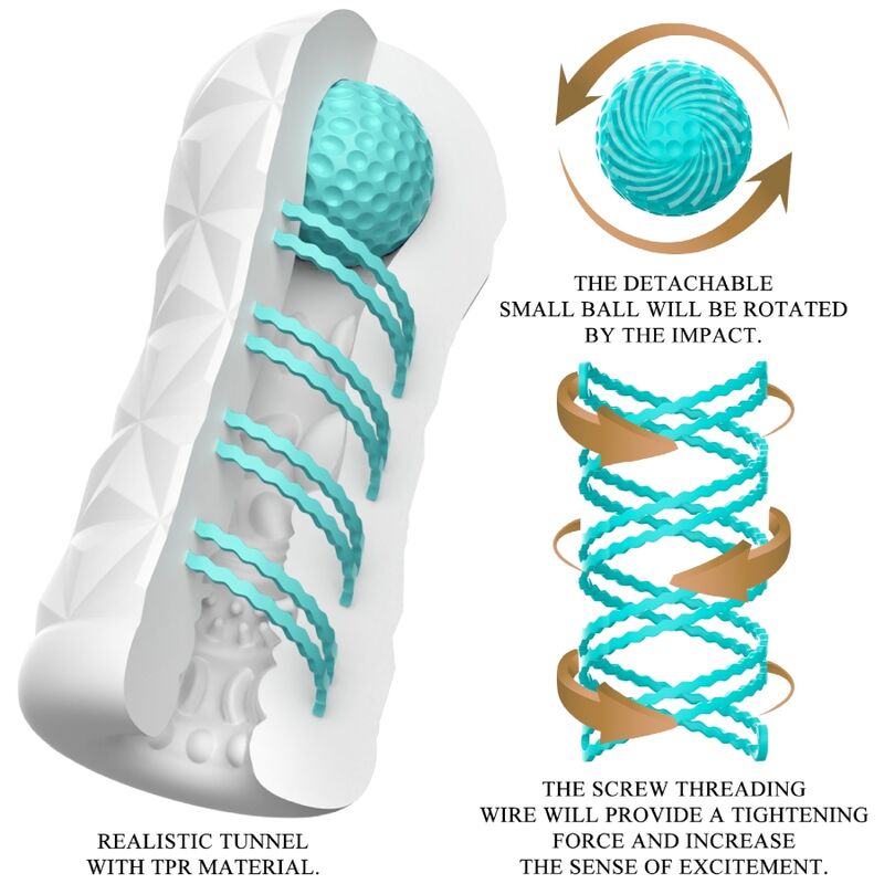 Small tool for huge masturbation fun! This transparent and reusable masturbator has a rotating spiral and a stimulating ball on the side, the rotating spiral makes the masturbator rotate during penetration and the ball on the top can stimulate the right spot and give a new sensation. The sheath has a stimulating and exciting texture inside that massages the penis intensely and dynamically during manual work. You can use this elegant and skin-friendly masturbator over and over again. Very easy to use and pure pleasure!