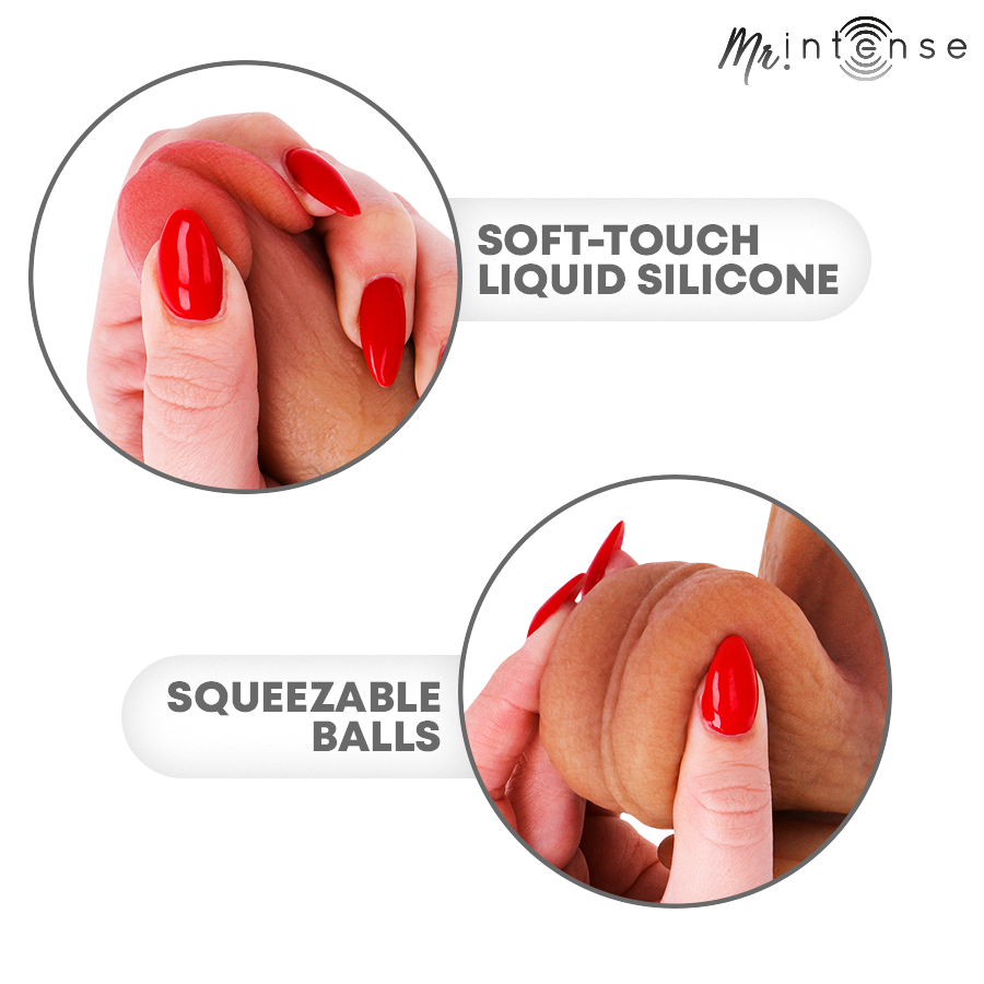 MR INTENSE - Bruce M foi projetado para quem busca uma experiência poderosa, realista e profundamente imersiva, combinando um design anatômico altamente detalhado com um tamanho maior que intensifica cada sensação. Seu formato imponente e testículos integrados proporcionam realismo visual e sensorial completo desde o primeiro toque.
