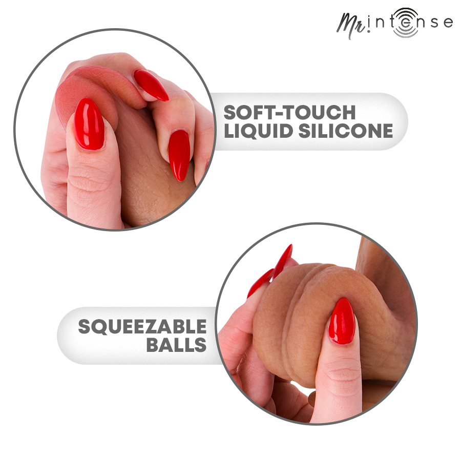 MR INTENSE - Bruce S foi projetado para quem busca uma experiência poderosa, imersiva e extremamente realista, combinando um design anatômico altamente detalhado com proporções equilibradas que proporcionam intensidade sem sacrificar o conforto. Seu formato realista e testículos integrados adicionam uma camada extra de realismo visual e sensorial, aprimorando a experiência desde o primeiro toque.