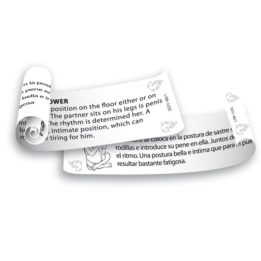 Uma sensação para você e seu parceiro! Usando a pinça, você escolhe um pergaminho do coração. Qual posição erótica você vai tentar? Será o passeio da deusa, o barco do amor ou a adoração? Aceite o desafio e experimente prazer e intimidade juntos.